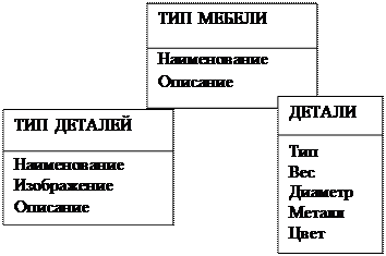 В этой диаграмме отражены свойства связи двух объектов нашей предметной области (типа мебели и предмета мебели):