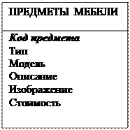 В связи сущностей ТИП МЕБЕЛИ Û ПРЕДМЕТЫ МЕБЕЛИ степень связи «один-ко-многим», n-связная сущность имеет обязательный класс принадлежности; следовательно, в соответствии с ER-методом