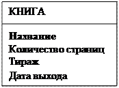Например, проектируется база данных издательства, предназначенная для хранения информации о книгах и авторах, которые их написали. Тогда два главных объекта (две сущности, информация о которых должна быть отражена в базе данных) – это книга и автор. Эти сущности содержательно соединены с помощью связи пишет. Атрибуты сущности книга – это название, количество страниц, тираж, дата выхода сигнального экземпляра, цена и т.д. Атрибуты сущности автор – это фамилия, адрес, телефон, №счета и т.д.