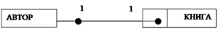 В этой диаграмме отражено правило: «каждый автор должен писать книгу, причем только одну, и каждую книгу должен писать только один автор», т.е. в базе данных не будет информации об авторах, не пишущих ни одной книги, а также информации о книгах, которые пока никто не пишет.