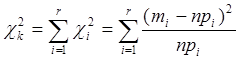 Если некоторые интервалы были объединены, то число степеней свободы rсоответственно уменьшается.