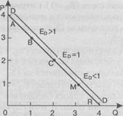 Нельзя отождествлять эластичность и наклон кривой спроса, ибо это разные понятия. Различия между ними можно проиллюстрировать на эластичности прямой линии спроса (рис. 13.1).
