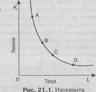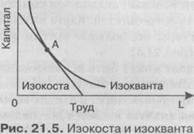 Наклон изокванты выражает зависимость одного фактора от другого в производственном процессе. При этом увеличение одного фактора и уменьшение другого не вызывает изменений в объеме выпускаемой продукции. Данная зависимость изображена на рис. 21.1.
