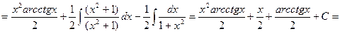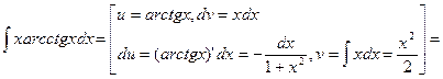 Опять используется формула интегрирования по частям, а т.к. н подынтегральную функцию входит в виде сомножителя arctg x, то u=atcctg x