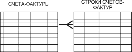 Примером могут служить многострочные документы, например, счет-фактура. В каждом из таких документов есть общие реквизиты, например, номер, дата, наименование поставщика и получателя. В таблице "счета-фактуры" такие реквизиты составляют одну запись. Однако, счет-фактура - многострочный документ, и для хранения каждой из строк, содержащей наименование товара, его количество, цену, сумму также потребуется отдельная запись. Приходится, таким образом, создавать дополнительную таблицу "строки счетов-фактур", связанную с предыдущей. Данные каждого счета-фактуры будут содержаться в одной записи первой таблицы и в одной или нескольких записях второй.