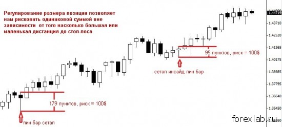 Следует учесть и существование ступенчатой модификации данного метода, которая заключается в увеличении или уменьшении лота при прохождении им определенного значения баланса торгового счета, но в рамках ступеней объемы не изменяются. К плюсам торговли фиксированной суммой можно отнести снижение рисков при увеличении торгового баланса, а к минусам – снижение доходности системы при неизменности цены за пункт. Таким образом, относительно объема сделки может возникнуть значительный риск при небольшом депозите, а при большом депозите риск будет недостаточным для получения серьезной прибыли.