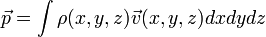 Если мы имеем дело с телом конечного размера, не состоящим из дискретных материальных точек, для определения его импульса необходимо разбить тело на малые части, которые можно считать материальными точками и просуммировать по ним, в результате получим:
