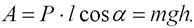 Если это же тело падает по наклонной плоскости длиной l и с углом наклона α к вертикали (lcosα = h), то работа сил тяготения равна прежней величине: