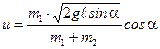 - скорость ящика перед падением на тележку;