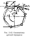 Скорость шарнира А находящегося в зацеплении, совпадает с окружной скоростью u звёздочки. Горизонтальная и вертикальная составляющие этой скорости: u2 = u cosq, u1 = u sinq.