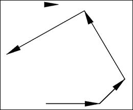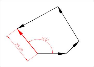 Алдымен Line (Кесінді) командасын қолданумен берілген күштер үшін кесінділерді тұрғызамыз, сол кезде бірінші векторды кез келген нүктеден бастап, ал келесілерін алдыңғы кесіндінің соңғы шетінен бастап тұрғызамыз. Векторлардың модульдері мен бағыттары берілгендіктен, өрістік (полярлық) координат жүйесін қолданған ыңғайлы, сонда @ белгісінен кейін кесіндінің ұзындығын, < бұрыш белгісін және х осімен жасайтын бұрышын береміз ( бұрыш х осінен сағат тілінің жүрісіне қарсы есептеледі). Мысалы, бірінші кесіндінің екінші шеті үшін @30<0 береміз, келесі нүкте үшін @20<45, содан кейін @45<120 және @50<210. Тұрғызу нәтижесі 2-суретте көрсетілген. Кесінді дұрыс тұрғызылмаса, < Ctrl> мен <z> батырмаларын біржолы басу арқылы оны болдырмауға болады.