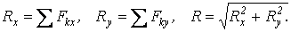 . Тең әсерлі күшті аналитикалық тәсілмен анықтағанда, координат жүйесін таңдайды және тең әсерлі күштің координаттық осьтерге проекциялары мен R модулін келесі формулалармен есептейді: