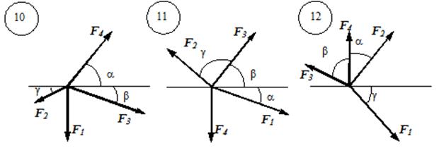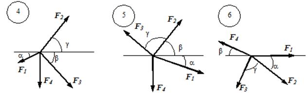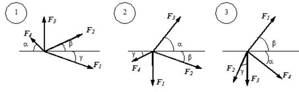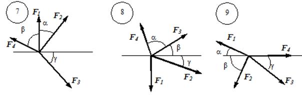3-тапсырма. Оқытушы берген нұсқа бойынша 8-суретте көрсетілген сұлба мен 1 кестедегі деректер үшін тоғысатын күштер жүйесінің тең әсерлі күшін Mathcad жүйесінде аналитикалық және AutoCAD жүйесінде графикалық тәсілмен анықтаңыз. Алынған нәтижелерді салыстырып, шешудің дұрыстығын тексеріңіз.