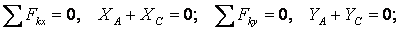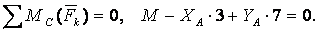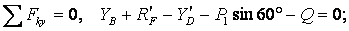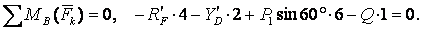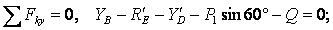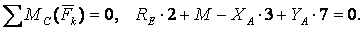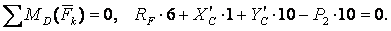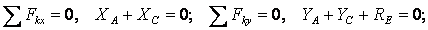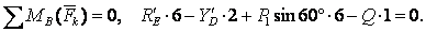 Жүйеде 9 теңдеу, онда 9 белгісіз бар, яғни бұл – статикалық анықталатын есеп. Теңдеулер жүйесі ізделетін реакциялардың шынайы мәндерін Re>0 шарты орындалғанда ғана анықтайды. Есеп шешуінің дұрыстығын тексеру үшін қосымша тепе-теңдік теңдеуін құру керек, мысалы бүтін құрылымға түсірілген сыртқы күштердің y осіне проекциялар теңдеуін.