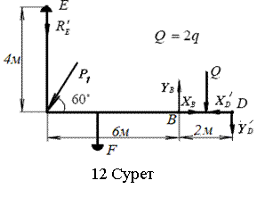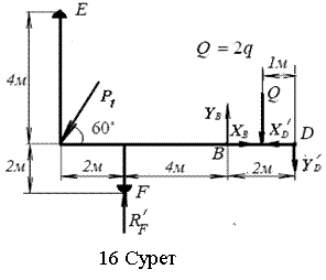 Есептеу көрсеткендей RE<0 болып тұр, яғни берілген жүктеме үшін Е нүктесінде реакция орын алмайды, сондықтан F нүктесінде реакция орын алатын жағдайды қарастыру керек.
