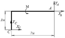 1-тапсырма. Берілген құрылым 3 бөліктен тұрады, құрылым үшін сыртқы байланыс ретінде А және В нүктелеріндегі жылжымайтын топсалы тіректер болып келеді. Осы нүктелердегі реакциялардың бағыттары белгісіз, сондықтан олардың әрқайсысы координаттық осьтермен бағытталған екі құраушы күшке жіктеледі: