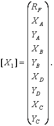 , осыны ескерумен тепе-теңдік теңдеулерін келесі сызықты алгебралық теңдеулер жүйесі түрінде жаза аламыз: