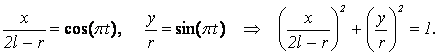 Бұл эллипс теңдеуі, оның жартылай осьтері a=2l-r және b=r, эллипс центрі координат басында орналасады.