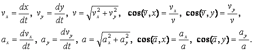 Нүкте қозғалысы координаттық тәсілмен берілген жағдайда оның жылдамдық пен үдеу векторларының модульдері және бағыттары келесі формулалармен анықталады:
