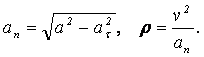 Нүктенің нормаль үдеуі және траекториясының қисықтық радиусы: