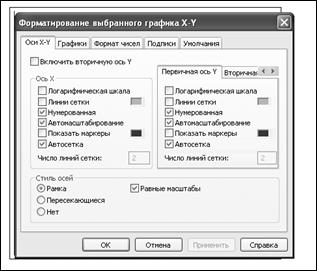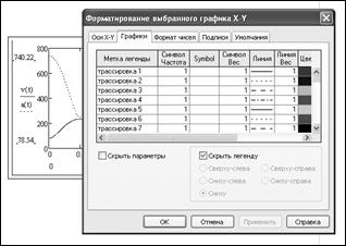 Графиктің форматын өзгерту үшін тінтуірдің оң жақ батырмасын басып, контексті мәзірін шақырамыз және онда Формат… таңдаймыз (немесе график аймағында тінтуірдің сол жақ батырмасымен екі рет шырт еткіземіз). Содан кейін Графики атты терезесінде график сызықтарының түрлерін және түстерін өзгертуге болады (25-суретті қараңыз).