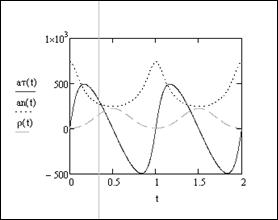 Осы тәсілмен жанама мен нормаль үдеулердің және траектория қисықтық радиусінің уақытқа тәуелділік графиктерін тұрғызамыз (26-суретті қараңыз).