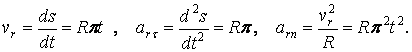 сонда салыстырмалы жылдамдық, салыстырмалы жанама және салыстырмалы нормаль үдеулер төменде берілген формулалар арқылы табылады: