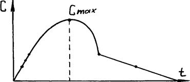 Однако концентрацию лекарственного вещества нужно проследить минимально в течение трех полупериодов его нахождения в организме (или дольше). При внесосудистных способах введения препарата необходимо установление времени (tmax.) достижения максимальной концентрации – Сmax.