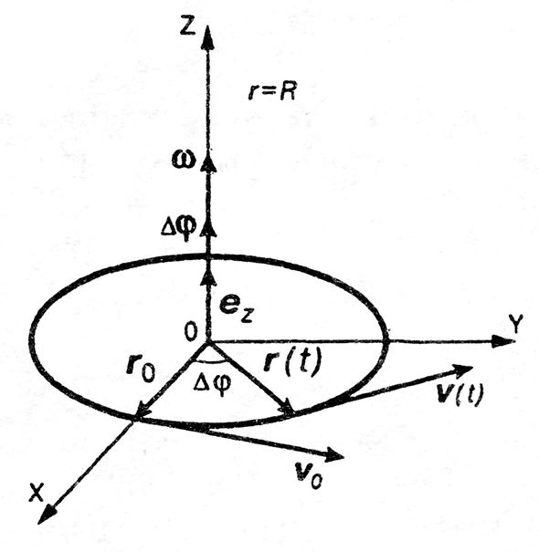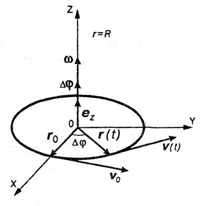 Для кинематического описания любого вида движения точки в принципе достаточно введенных выше линейных характеристик. Однако в случае вращения точки удобно пользоваться специальными характеристиками вращения – угловыми кинематическими характеристиками. Их можно обсудить с помощью рис. 4.