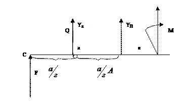 - Заданная балка находится в равновесии под действием внешних сил и внутренних сил (сил) реакции). К ней можно применить уравнения равновесия для плоской системы параллельных сил.