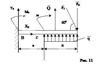 - Отбросим имеющуюся связь и заменим ее действие на балку реакциями ХВ и YВ и МВ.