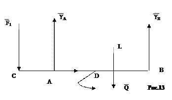 3. Заданная балка находится в равновесии под действием внешних сил и внутренних сил (сил реакции). К ней можно применить уравнения равновесия для плоской системы параллельных сил: