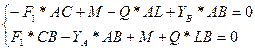 4.Составим суммы моментов всех сил относительно точек опоры: