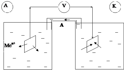 Если два электрода соединить проводником, а растворы электрическим ключом, то образуется гальванический элемент (рис. 2).
