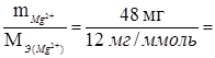 Решение. Прежде всего определим эквиваленты обоих веществ в растворе. Мольная масса магния М (Mg2+) = 24 г/моль. Мольная масса эквивалента магния (в расчете на 1 связь) МЭ (Mg2+) = 1/2 М (Mg+2) = 12 г/моль = 12 мг/ммоль.