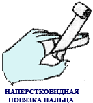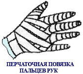 На пальцы накладывают так называемые наперстковидные повязки. Их начинают путем наложения сложенного в несколько раз бинта на палец; дальнейшими ходами бинта повязку укрепляют на пальце. Палец можно перевязывать также по способу обычной спиралевидной повязки, используя узкий бинт. При необходимости перевязать все пальцы руки накладывают повязку-перчатку.