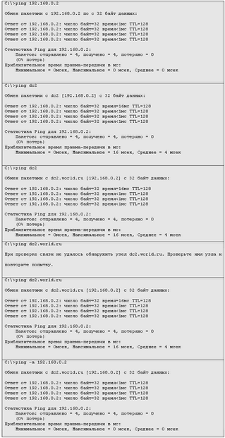- ping <FQDN-имя узла>, когда в зоне сервера DNS есть запись для сервера DC2 (узел успешно найден);