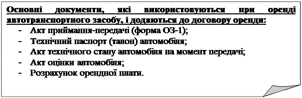 Рис. 3.3. Основні документи, які використовуються при оренді автотранспортного засобу, і додаються до договору оренди