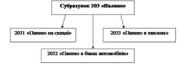 Рис. 3.6. Рекомендовані субрахунки другого порядку до субрахунку 203 «Паливо» для відкриття їх за місцем зберігання
