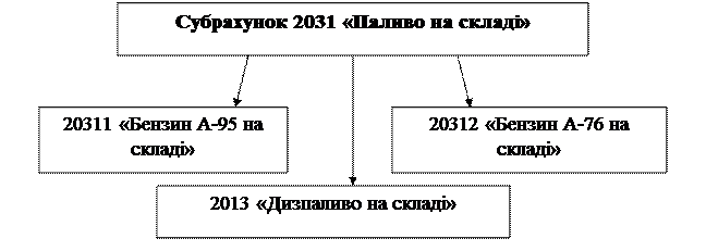Рис. 3.7. Рекомендовані субрахунки третього порядку до субрахунку 2031 «Паливо на складі» для відкриття їх за видами палива