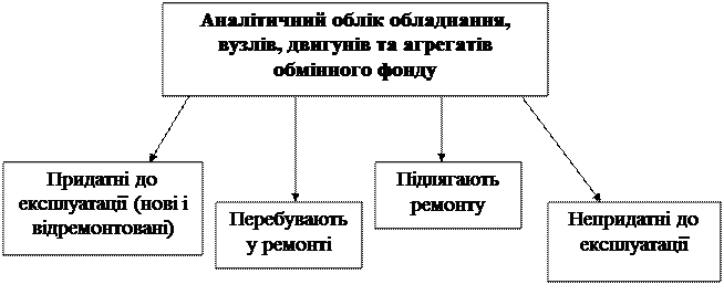 Рис. 3.12. Аналітичний облік обладнання, вузлів, двигунів та агрегатів обмінного фонду