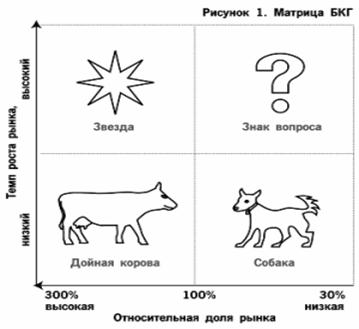 Матрица выделяет четыре типа производств: «звезды», «дойные коровы», «трудные дети» и «собаки» и предполагает стратегии для каждого из них.