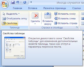 Тонкие настройки таблицы (параметры строк, столбцов, ячеек) можно произвести в окне "Свойства таблицы", которое открывается кнопкой "Свойства" на панели "Таблица".