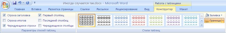 Word 2007 представляет большой выбор уже готовых вариантов форматирования таблиц. Все они расположены на панели "Стили таблиц".