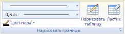 Инструменты, расположенные на панели "Нарисовать границы", позволяют добавлять/убирать границы ячеек таблицы (объединять, разъединять ячейки), а также позволяют произвести гибкие настройки границ.