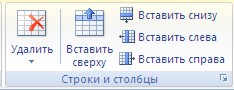 Для вставки и удаления элементов таблицы предназначены инструменты панели "Строки и столбцы" контекстной ленты "Макет".