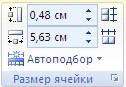 Инструменты панели "Размер ячейки" позволяют произвести точные настройки размеров для любой ячейки таблицы.