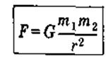 Между любыми двумя телами (материальными точками) действует сила взаимного притяжения, или сила гравитационного взаимодействия, прямо пропорциональная произведению масс этих тел {т1 и т2) и обратно пропорциональная квадрату расстояния (г) между ними.