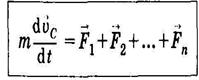Центр масс системы движется как материальная точка, в которой сосредоточена масса всей системы и на которую действует сила, равная геометрической сумме всех внешних сил, приложенных к системе