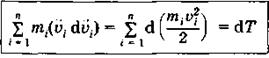 Первый член равенства (*) равен элементарному приращению кинетической энергии dT системы.